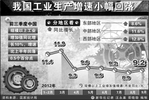 在國家統(tǒng)計局昨日發(fā)布的三季度經(jīng)濟運行數(shù)據(jù)中,9月份規(guī)模以上工業(yè)增加值同比實際增長9.2%,比8月份提高0.3個百分點,環(huán)比上月增長0.7...